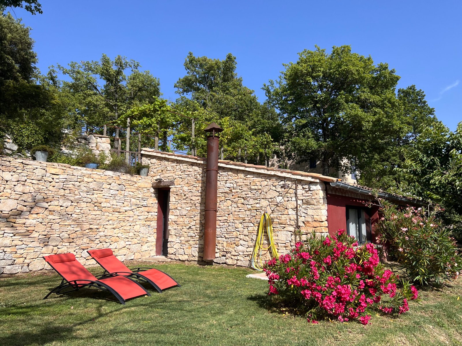 Une grande terrasse face du Luberon est équipée d'une douche,de transats et d'un barbecue/plancha . C'est un espace romantique et paisible. Vous pouvez si vous préférez vous installer sur un banc sous les cerisiers.